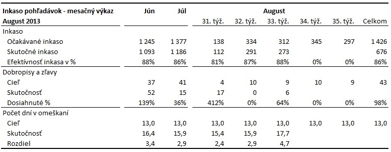 oblasti riadenia pohľadávok (viď príklad mesačného výkazu inkasa pohľadávok